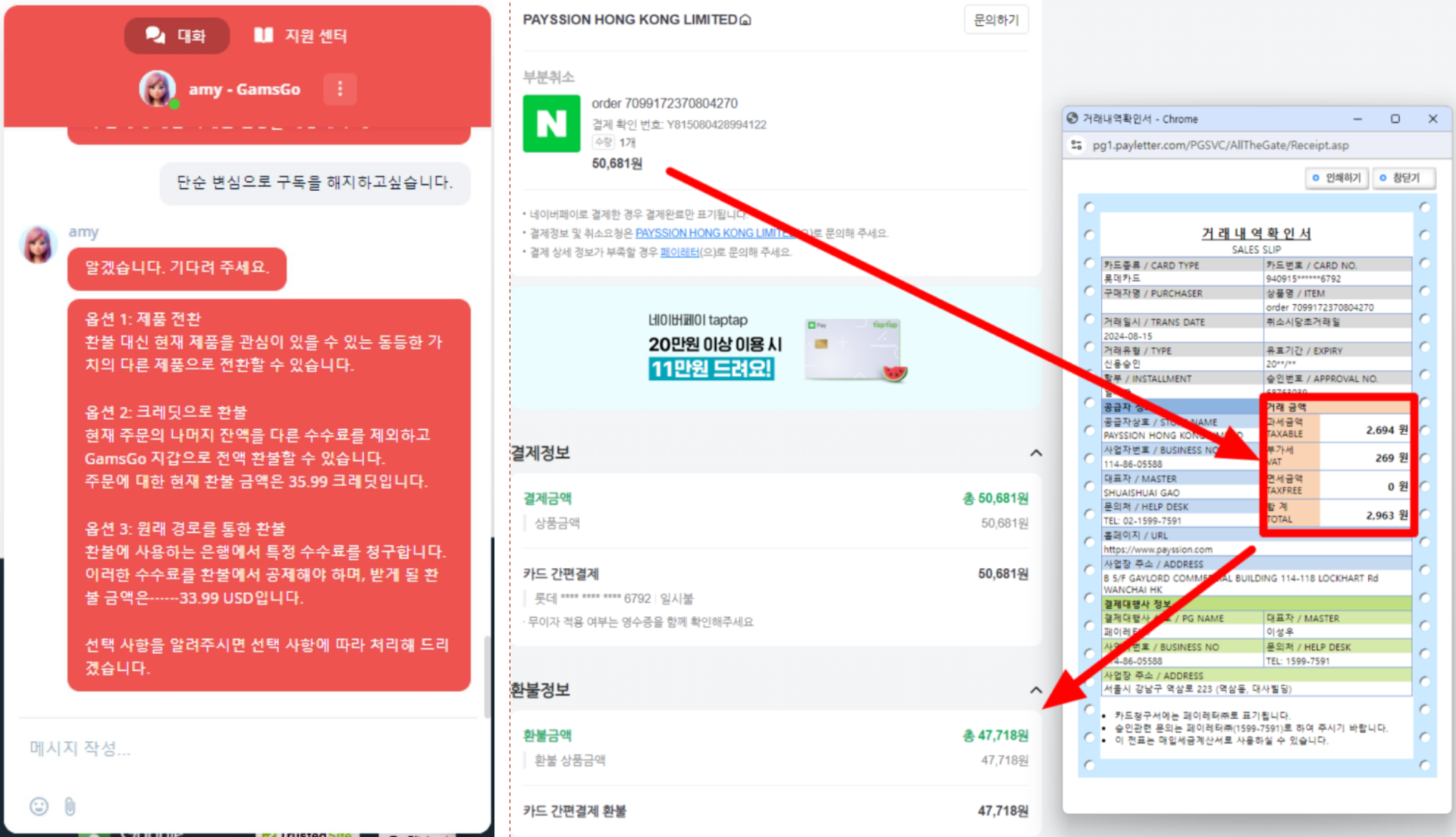 진행해보니 100% 환불이 되진 않았지만, 세금과 각종 수수료 2$를 제외한 금액이 정상적으로 환불처리가 되었어요.