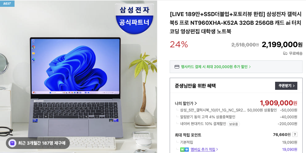 갤럭시북5 프로는 현 시점 가장 합리적인 선택지라고 생각하고있고, 저 또한 현재까지도 문제없이 만족하며 사용중입니다.