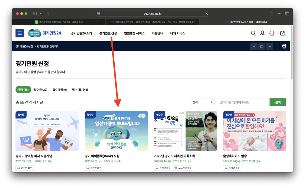 | 신청경로 | 경기민원24 누리집 → “경기 아이듬뿍(Book)” 서비스 선택 → 온라인 신청 |