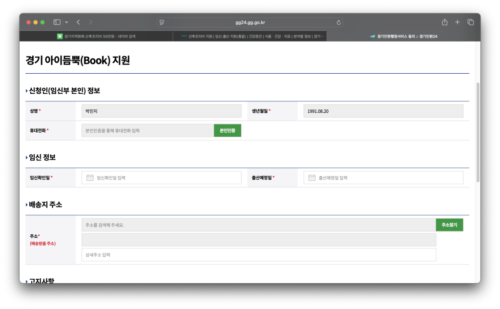 먼저, “신청일 기준으로 경기도에 주소가 있는 임신 중인 여성”만 신청할 수 있어요. 주민등록이 경기도로 되어 있어야 하고, 실제 임신 사실은 병원에서 발급받은 임신확인서로 증빙합니다. 가족이나 남편이 대신 신청하는 구조가 아니라, 임신부 본인 명의로만 신청할 수 있어요.