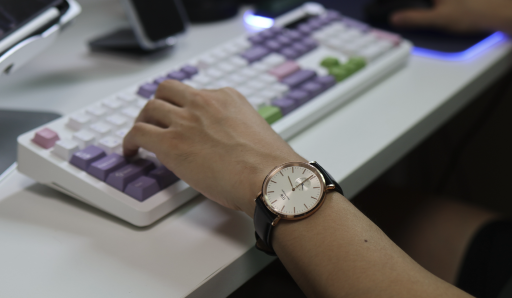 케이스 두께가 7.95mm로 얇아 셔츠 소매 안쪽에도 자연스럽게 들어갑니다. 로즈골드와 블랙 가죽의 조합은 격식을 차린 정장에도, 캐주얼한 데일리룩에도 잘 어울려 활용도가 높습니다. 또한 3ATM 생활방수 기능으로 일상적인 물 튐에는 안전하지만, 수영이나 샤워 시에는 착용하지 않는 것이 좋습니다.