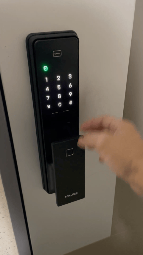 혼자 살다 보면 보안에 더 민감해질 수밖에 없는데, 밀레 도어락은 안심할 수 있는 기능들이 많았습니다. 우선 ‘허수 비밀번호’ 기능이 있어서 친구나 배달원 등 옆에 누가 있을 때 비밀번호 앞뒤로 무작위 숫자를 입력해도 문이 열립니다. 덕분에 비밀번호 노출 걱정도 없고, 키패드에 지문 자국이 남아 비밀번호를 유추당할 위험도 줄어들었어요.