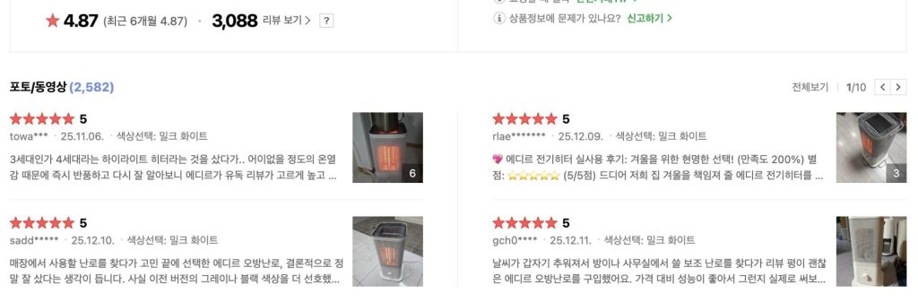 게다가 소방청 통계에 따르면 겨울철 화재의 주요 원인 중 하나가 바로 ‘전열기기’라고 합니다. 따뜻함도 중요하지만, 무엇보다 안전이 걱정되더라고요. 그래서 이번 겨울에는 1) 공기를 태우지 않아 건조하지 않고, 2) 화재 위험으로부터 안전한 제품을 찾기 위해 며칠 밤을 새워 검색했습니다.