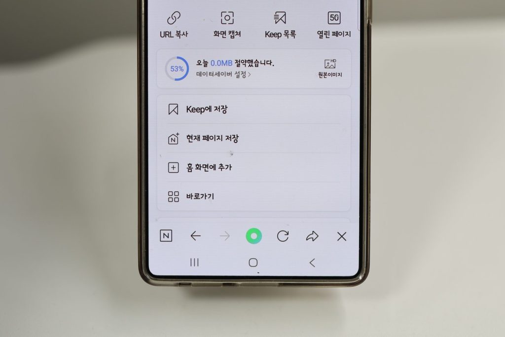 갤럭시의 경우에는 더 간단합니다. 네이버 앱에서 같은 페이지로 들어가 하단 우측의 메뉴버튼을 누릅니다.