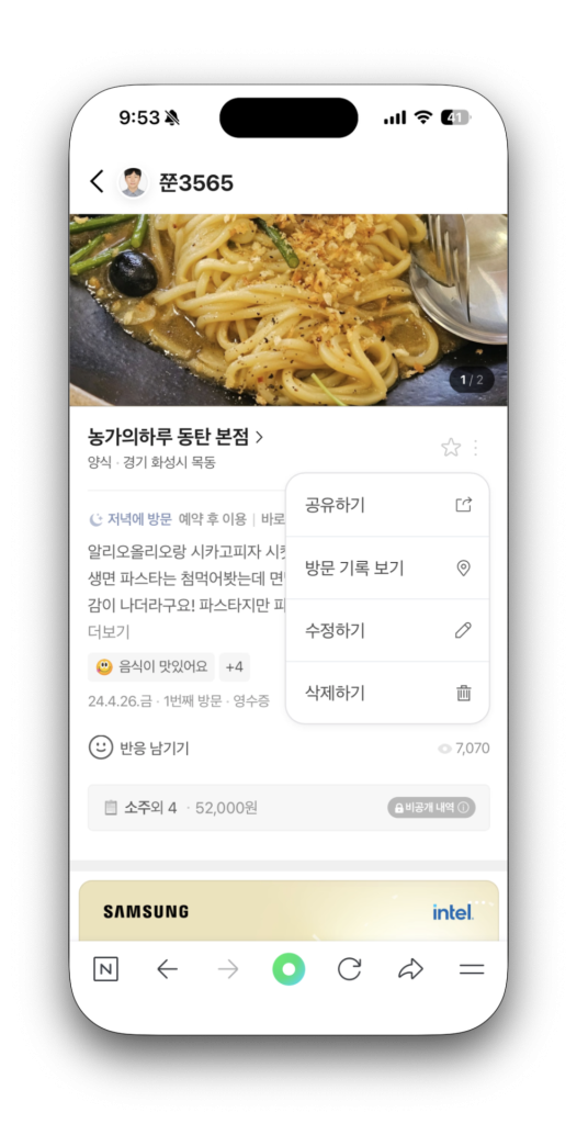 첫째, 실제 방문이 보이는 사진을 남기는 것이 중요합니다. 메뉴판, 계산대, 테이블 위 음식, 매장 전경 같은 걸 같이 올리면 사람들이 오래 머물러서 노출도가 높아져요.