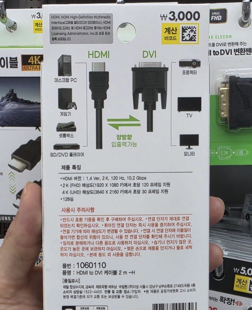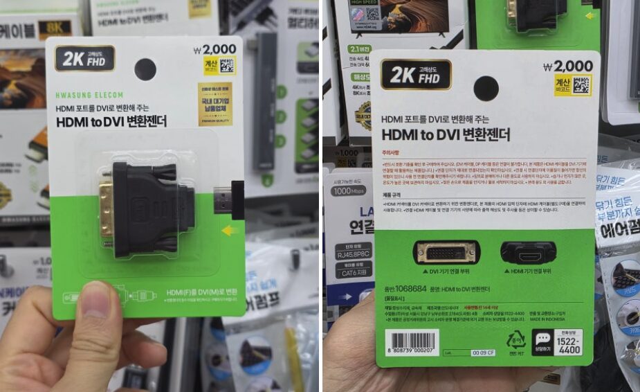 | HDMI to DVI / DVI to HDMI | 약 3,000~5,000원 | 구형 DVI 모니터와 최신 PC·노트북 연결 |