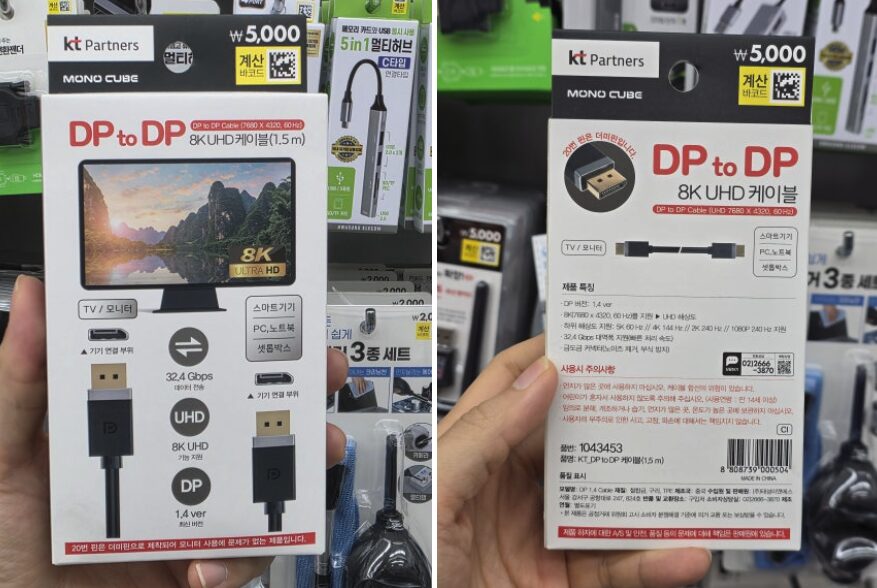 | DP to DP, RGB(VGA) | 약 5,000원 | 게이밍 모니터(고주사율), 구형 사무용 모니터 |