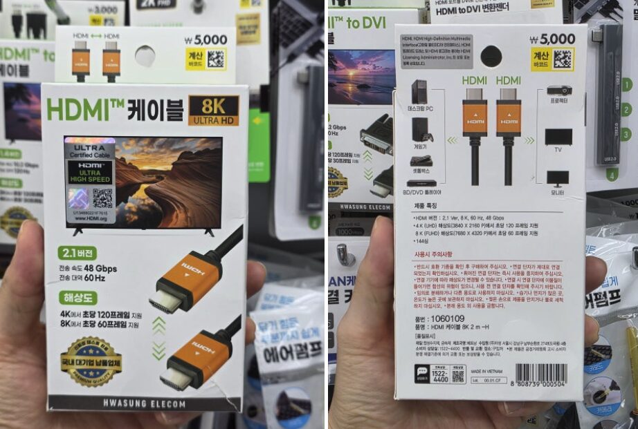 | HDMI 2.1 to HDMI | 약 5,000원 | PS5, Xbox Series X, 4K 120Hz·8K TV 연결 |