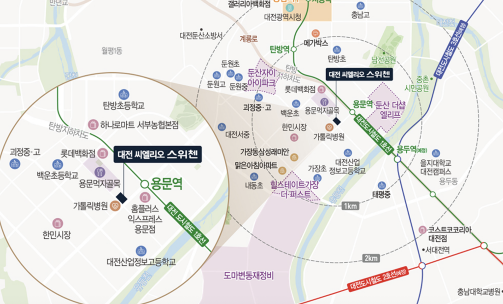 입지는 대전 서구 용문동으로, 지하철 1호선 용문역 인근에 위치해 교통 편의성이 뛰어나고 생활 인프라도 잘 갖춰져 있습니다. 입주는 2025년 9월 예정이며, 전매 제한도 이미 풀려 있다는 점에서 투자자에게도 관심을 끌 요소가 있습니다.