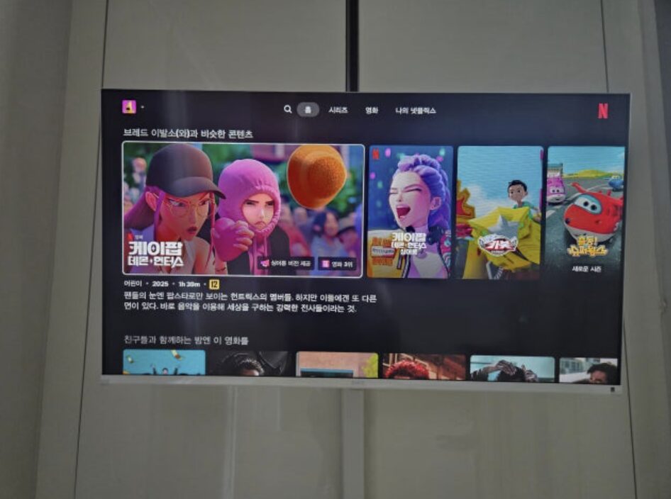 유튜브, 넷플릭스, 디즈니플러스 같은 OTT 앱들이 기본적으로 잘 호환되고, 구글 어시스턴트로 음성 검색도 가능해요. 스마트폰 화면을 미러링 하는 것도 안드로이드와 아이폰 모두 간편하게 연결되어서 가족들이 각자 핸드폰에 있는 사진을 크게 띄워놓고 보기도 편했답니다.