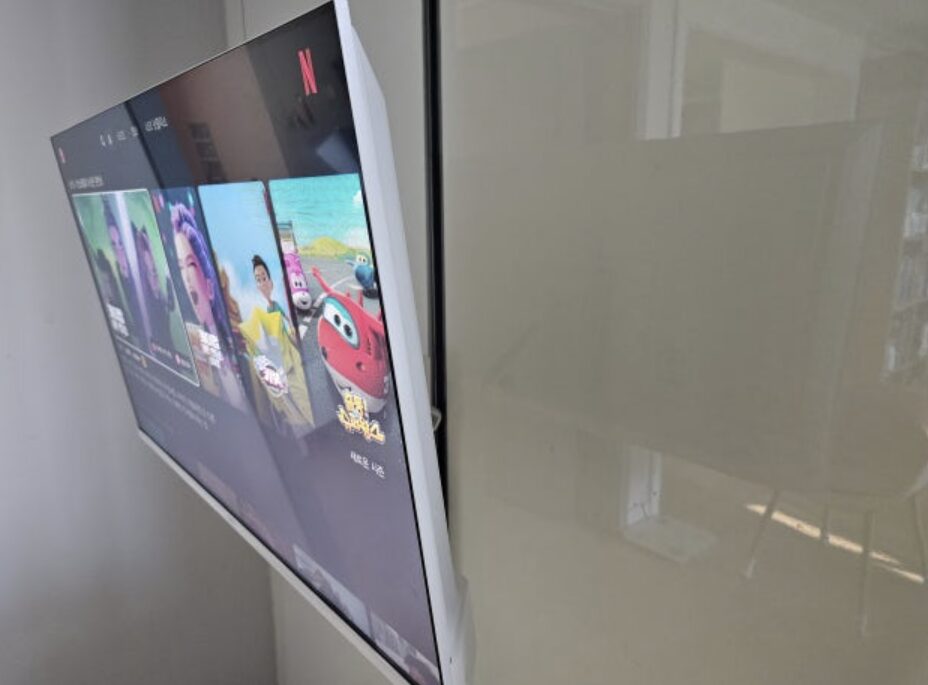 가장 먼저 만족스러웠던 점은 역시 화면 크기와 화질이었어요. 보통 이동식 스크린 제품들이 27인치 정도인데 반해, 이 제품은 43인치(109cm)의 대화면이에요. 게다가 일반 LED가 아닌 QLED 패널을 사용해서 색감이 정말 쨍하고 선명하더라고요.