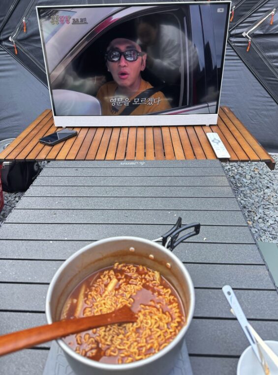 대용량 배터리가 내장되어 있기 때문에 전원 코드를 꽂기 힘든 침대 옆이나 겨울 캠핑장 텐트 내부에서도 끊김 없이 영상을 감상할 수 있었어요. 절전 모드 기준으로 최대 4.5시간까지 재생이 가능하다 보니 영화 한 두 편은 거뜬히 볼 수 있었고, 전용 시가잭이나 USB-C 보조배터리로도 충전이 가능해서 야외 활동 시 배터리 걱정을 덜 수 있었어요.