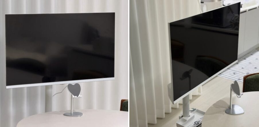 베젤이 거의 없는 제로 베젤 디자인이라 화면이 꽉 차 보이는 느낌을 주는 점도 마음에 들었습니다. 시력 보호 기능인 아이케어 기능도 탑재되어 있어서 장시간 시청해도 눈의 피로도가 덜했습니다.