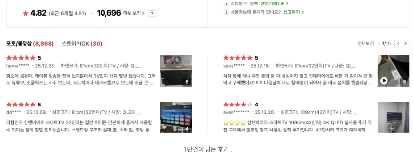 선명한 QLED 화질과 1등급 에너지 효율 그리고 최신 구글 TV 5.0의 빠른 속도까지 갖추고 있어 세컨드 TV나 1인 가구용 메인 TV를 고민하시는 분들에게 강력하게 추천하고 싶습니다.