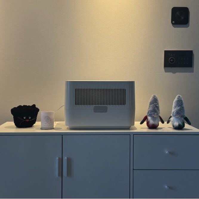 스마트 컨트롤러가 기본 구성품으로 들어 있어서 내가 원하는 희망 습도를 설정해두면 알아서 작동하고 멈춰요. 덕분에 실내가 너무 과하게 습해지는 일 없이 항상 쾌적한 상태를 유지할 수 있었어요. 24시간 내내 켜두어도 연간 전기세가 굉장히 저렴한 수준이라 유지비 부담도 거의 느껴지지 않았어요.