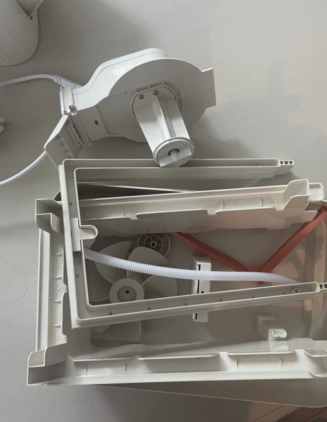 가습기를 고를 때 가장 신경 쓰였던 부분이 바로 세척이었어요. 브루네는 모터 부분을 제외한 모든 부품을 통째로 분리해서 씻을 수 있는 구조에요. 복잡한 전자 장치가 수조 안에 들어있지 않아서 중성세제로 시원하게 닦아낼 수 있다는 게 큰 장점이었어요. 전용 클리닝 키트도 기본으로 구성되어 있어서 구석구석 물때를 제거하기에 편리했죠. 필터 역시 화학 물질이 첨가되지 않은 종이 소재라 안심하고 사용할 수 있었어요.