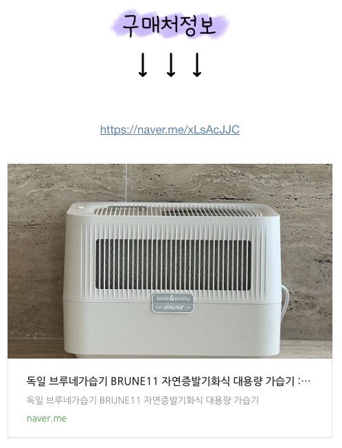저도 가장 안전한 방식을 찾다 보니, 커뮤니티에서 ‘가습기 끝판왕’으로 불리는 브루네 자연기화식 가습기 BRUNE 11 (=B125)를 구매하게되었어요.