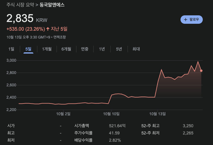 다만 오늘 같은 테마 장세에선 가격이 빠르게 흔들립니다. 10월 13일 장중 16~21% 급등, 고가 2,945원 접근 등 수급이 몰린 흔적이 뚜렷했어요. 수치는 장중 기준으로, 하루 내에서도 변동폭이 컸습니다.