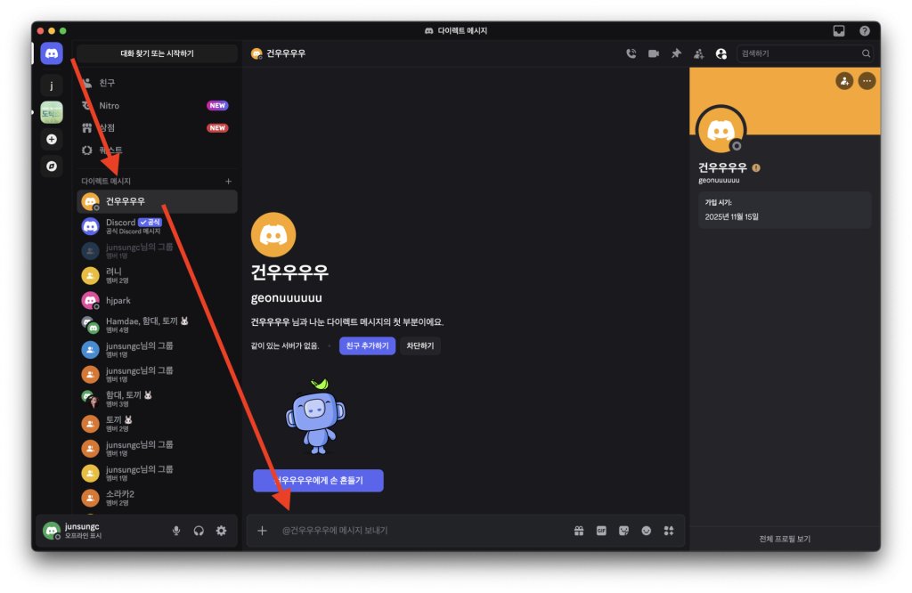 참고로 디스코드는 ‘서버’라는 커뮤니티 공간 안에 여러 채널을 만들어 주제를 분리합니다. 덕분에 불필요한 대화가 섞이지 않아 깔끔합니다.