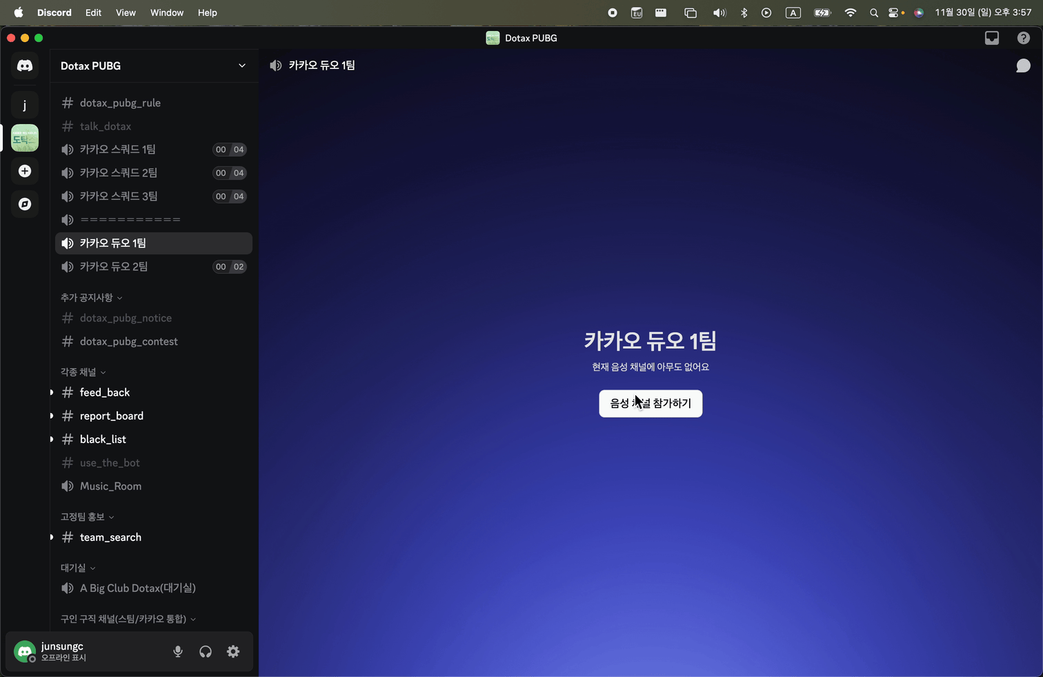 제가 접속한 [카카오 배틀그라운드] 서버내에서 # 으로시작하는 것이 채널입니다. 예를들어 [배린이_멤버모집] 채널에 들어가보니, 위와같이 사람들이 같이 게임할 사람을 구하고 있는 것을 볼 수 있죠.
