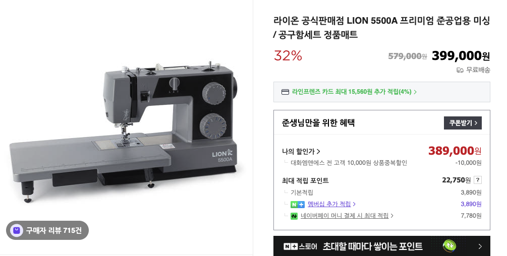라이온 5500A 미싱 재봉틀 장단점 솔직후기