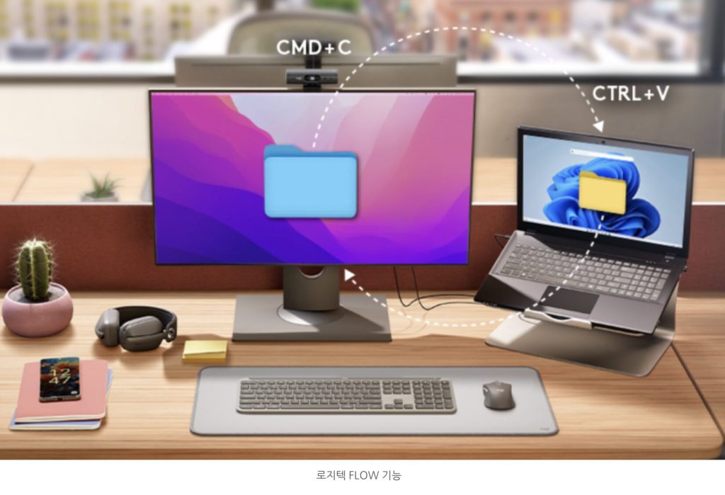 특히 윈도우와 맥 OS 사용자 모두를 고려한 듀얼 키 레이아웃이 적용되어 있어, 운영체제가 바뀔 때마다 한/영 키나 커맨드 키 위치 때문에 헷갈릴 일이 없어서 좋았습니다. 로지텍 Flow 기능을 지원하는 마우스와 함께 사용하면, 마치 듀얼 모니터를 쓰듯이 마우스 커서 이동만으로 키보드 연결이 자연스럽게 따라오기 때문에 업무 흐름이 끊기지 않는다는 점도 큰 장점입니다.