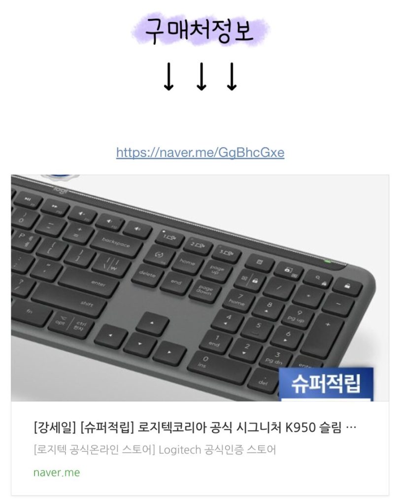 문득 내가 하루에 8시간 이상 만지고 있는 이 물건이 내 손목 피로도와 업무 효율을 결정짓고 있다는 사실을 깨닫고 나니 덜컥 겁이 나더라고요. 내 손목 건강과 칼퇴를 위해서는 투자가 필요하겠다는 생각이 들었습니다. 그래서 고민 끝에 여러 제품을 비교해 본 뒤, 로지텍 시그니처 슬림 K950 모델을 제 돈으로 직접 구매했습니다.