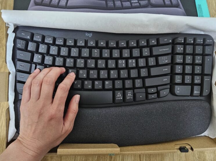 처음에는 병원도 다녀보고 파스도 붙여봤지만, 결국 매일 쓰는 도구를 바꾸는 게 근본적인 해결책이라는 생각이 들었어요. 그래서 시중에 나온 수많은 인체공학 키보드를 찾아보게 되었습니다. 너무 기괴하게 생긴 건 적응이 힘들 것 같고, 그렇다고 일반 키보드는 손목에 무리가 가는 것 같아 고민이 많았는데요. 여러 제품을 비교해본 끝에 로지텍 웨이브 키즈 (Wave Keys) 제품을 내돈내산으로 구매했습니다.