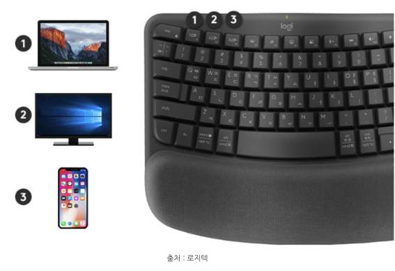 보통 ‘인체공학 키보드’라고 하면 키보드가 반으로 쪼개진(스플릿) 형태를 떠올리셔서 겁부터 먹는 분들이 많아요. 저도 그랬거든요. 그런데 이 제품은 이름처럼 물결(Wave) 모양으로 완만하게 휘어져 있는 게 특징이에요.