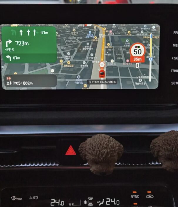제가 직접 시간을 재보니 부팅 후 연결까지 약 10초 내외가 걸렸습니다. 안전벨트를 매고 주행 준비를 하는 동안 이미 내비게이션이 화면에 떠 있어서 정말 편리했어요. 2.4GHz와 5GHz 대역을 모두 사용하는 듀얼 밴드 Wi-Fi 덕분에 끊김 현상도 거의 느끼지 못했습니다. 저가형 제품을 쓸 때 겪었던 딜레이나 튕김 현상이 없어서, 마치 순정 기능을 쓰는 듯한 쾌적함을 느낄 수 있었어요.