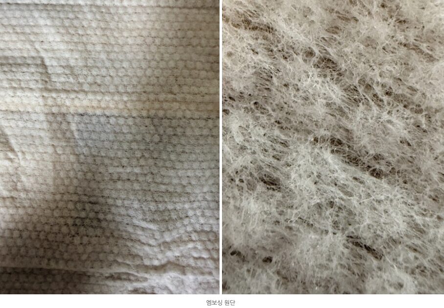 | 원단 평량 | 50gsm (플레인/엠보싱 선택 가능) |