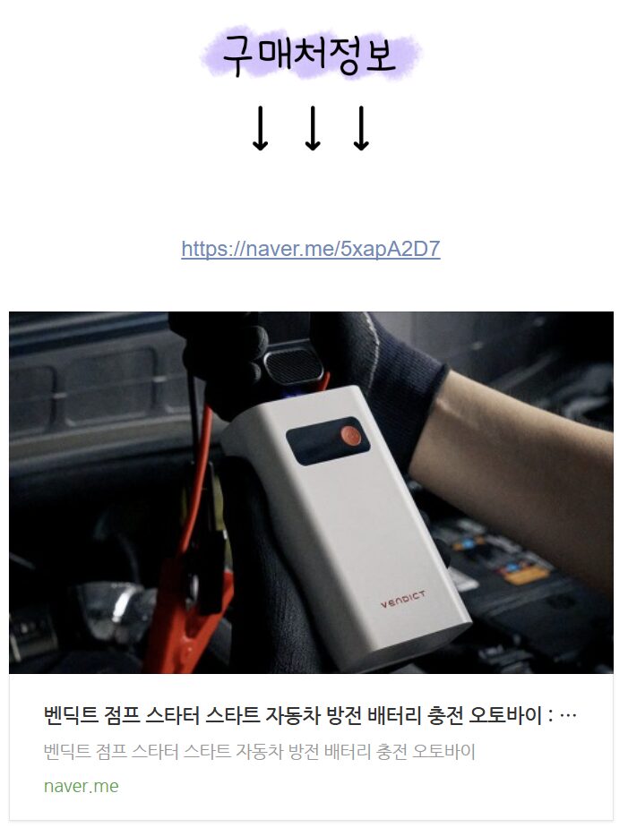 가장 후기도 좋고 평점도 좋았던 벤딕트 애니부스트 제품을 내돈내산으로 구매했어요. 그리고 이걸로 실제로 지금까지 두번정도 시동을 걸어봤어요.