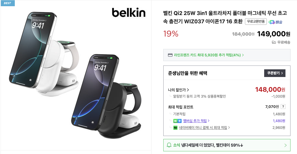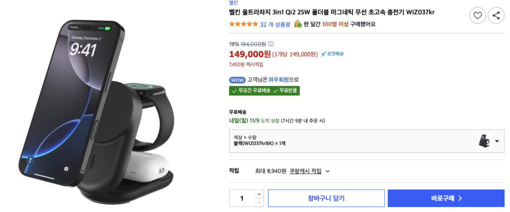 그리고 벨킨은 애플 공인 파트너라 안정성 면에서도 믿음이 갔고요. KC 인증과 보증 기간까지 갖춰져 있어서, 고가 충전기를 살 때 가장 걱정되는 부분을 꽤 잘 챙겨준 제품이라고 느꼈습니다.