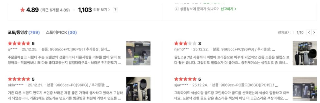 무려 40만원대 전기면도기인데도 꽤 많은 사람들이 구매하고 후기도 남겼더라고요.