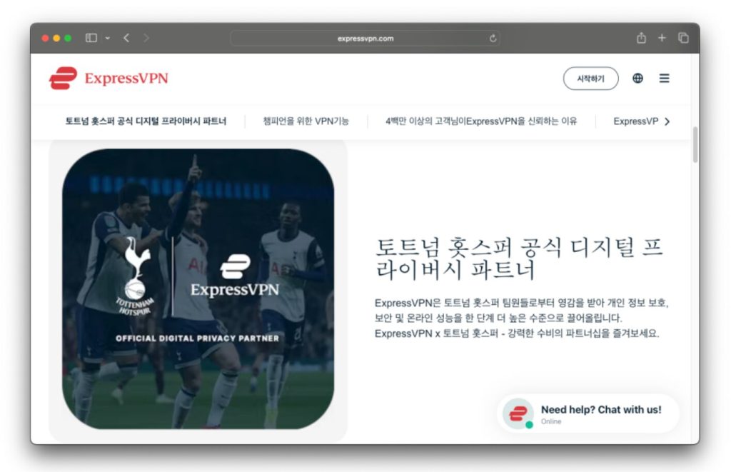ExpressVPN은 최근 토트넘 홋스퍼의 디지털 프라이버시 파트너로도 알려져 있습니다. 토트넘처럼 유명 구단과 공식 파트너십을 맺었다는 것은, 그만큼 브랜드 이미지와 신뢰도가 검증되었다 것을 방증하죠. 즉, 보통 개인정보 보호와 보안 구조에 상당한 투자하고 있고 덕분에 큰 사고가 없었다는 것을 의미합니다.