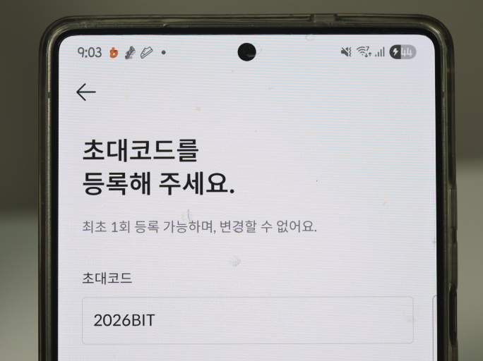 | 2단계 | 초대코드 입력 (2026BIT) 앱 내 [더보기] → [쿠폰/코드 등록] 메뉴에서 입력 | 약 1분 |