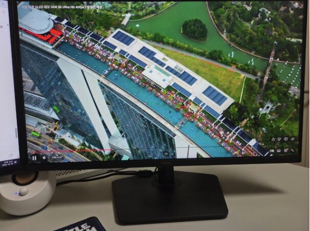 또한 고속 IPS 패널을 탑재하고 있다는 점이 큰 장점이었어요. 상하좌우 178도의 넓은 시야각을 제공하기 때문에 어떤 각도에서 화면을 봐도 색상 왜곡 없이 또렷한 화질을 유지해주더라고요. 왜냐하면 일반적인 패널보다 색 정확도가 높고 응답 속도가 빠르기 때문입니다. 덕분에 게임뿐만 아니라 고화질 영상을 시청할 때도 몰입감이 상당해서 만족스러웠어요.