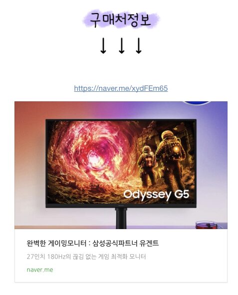 고민 끝에 제가 선택한 제품은 삼성전자의 오디세이 G5 LS27FG500입니다. 한 달간 직접 사용해보니 왜 이 제품이 게이머들 사이에서 가장 잘나가는 지 이유를 알 수 있었는데요. 제가 사용해보고 느낀 경험을 공유해 드릴게요.