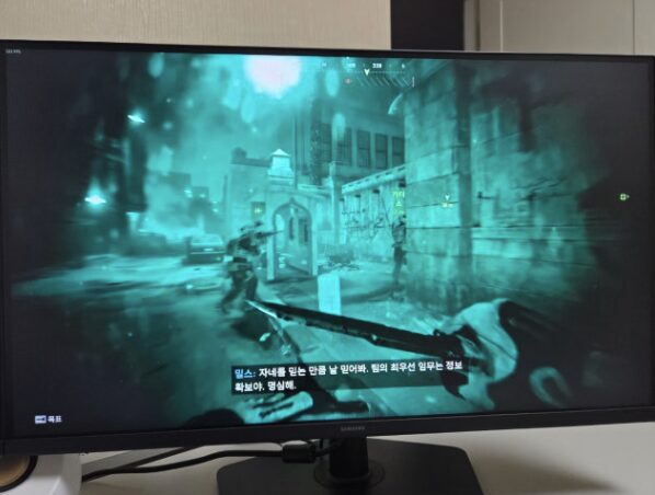 지싱크 호환 기능과 AMD 프리싱크를 모두 지원하는 점도 마음에 들었어요. 그래픽 카드와 모니터의 신호를 동기화해주기 때문에 화면 찢김이나 버벅거림 현상을 줄여주기 때문입니다. 고사양 게임을 할 때도 화면이 안정적으로 구현되어 눈의 피로감이 덜해서 좋았어요. 또한 블랙 이퀄라이저 기능을 통해 어두운 곳에 숨어 있는 적을 쉽게 발견할 수 있어 게임을 유리하게 이끌어갈 수 있었답니다.
