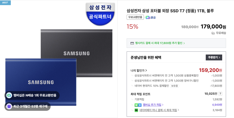 | 모델명 | Portable SSD T7 4TB |