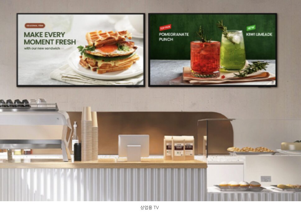 실제로 일반 가정용 TV와 상업용 디스플레이는 내구성과 용도가 다릅니다. 왜냐하면 가정용은 하루 16시간 이상 켜두도록 설계되지 않았거든요. 따라서 먼저 저렴한 중소기업에서 나온 상업용 TV를 고려해 보실 수 있습니다. 하지만 중소기업 제품은 화질이나 AS 문제로 스트레스를 받을 확률이 높습니다.