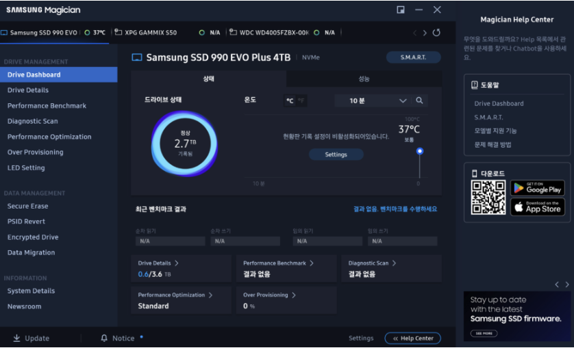 하드웨어만큼이나 중요한 게 소프트웨어인데요. 삼성에서는 ‘매지션(Magician)’이라는 전용 소프트웨어를 제공해 줘요.