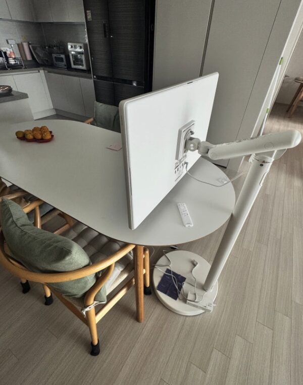 바로 전원 연결 방식입니다. 무선 배터리가 내장된 방식이 아니라 전원 코드를 꽂아야 작동하는 방식입니다. 물론 스탠드 기둥 안으로 선을 숨길 수 있어 깔끔하게 정리는 되지만, 이동할 때마다 콘센트 위치를 찾아야 하는 번거로움은 감수해야 합니다.