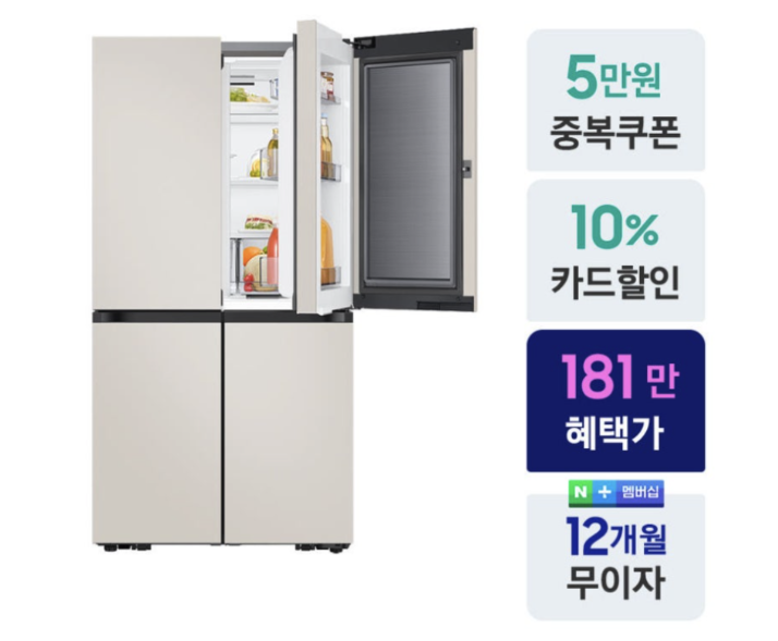 내부는 서랍과 선반의 비율이 균형 잡혀 있어요. 크기가 큰 식재료나 밀키트 박스도 바로 들어가고, 자주 꺼내는 음식은 눈높이 선반에 자연스럽게 배치됩니다. 문 수납 공간도 넓어서 음료·소스·우유 등 종류별로 분리해서 정리하기 쉬운 구조에요. 가족이 많은 집일수록 체감 차이가 큽니다.