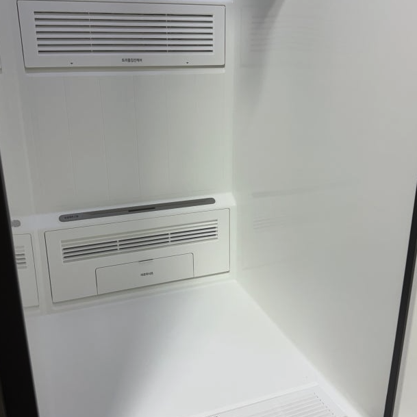 특히 에어워시 방식이라 진동이 적기 때문에 빌트인 가구처럼 딱 맞게 설치할 수 있다는 점이 매력적이에요. 문을 열어두면 공간 제습 기능까지 작동해서, 여름철 꿉꿉한 드레스룸 습도 관리까지 이 기기 하나로 해결할 수 있어서 정말 좋았어요.