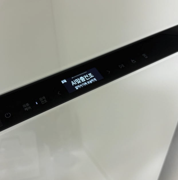 사실 의류관리기를 처음 쓰면 ‘이 옷은 몇 분을 돌려야 하지?’ 고민하게 되잖아요. 그런데 이 제품은 AI 맞춤 건조 기능이 있어서 제가 따로 시간을 설정할 필요가 없었어요.