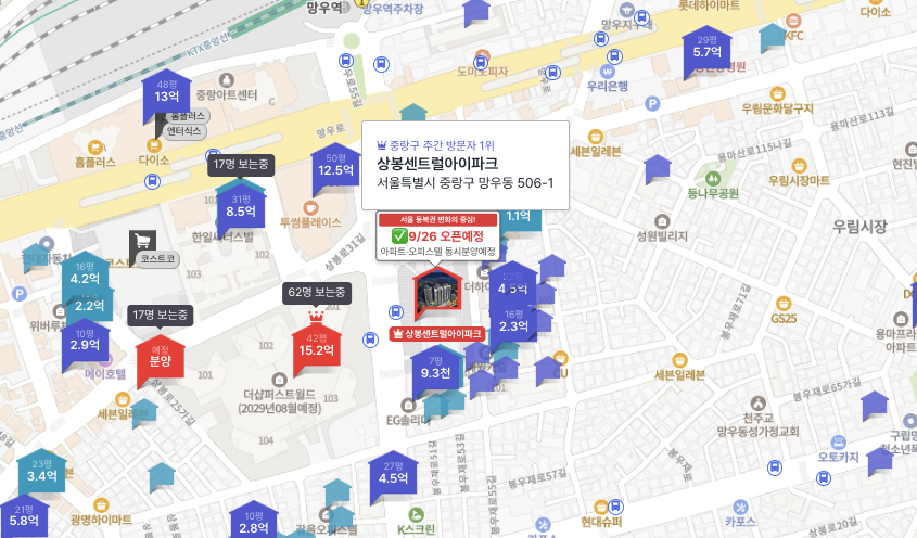 | 더샵퍼스트월드(상봉동) | 2029년 8월 예정 | 13억대 초중반 |