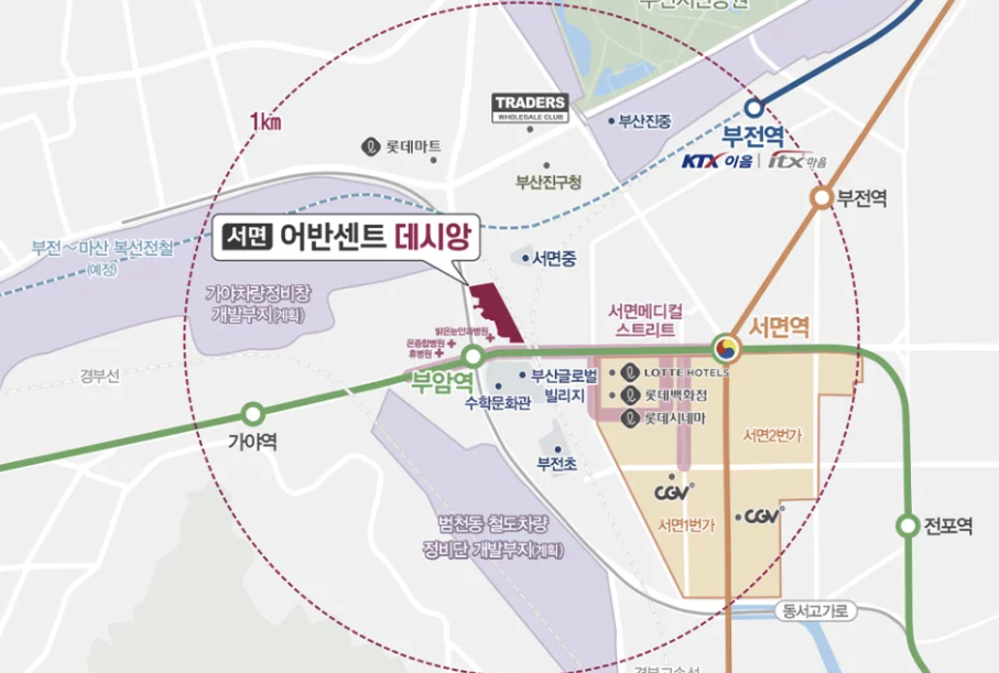 서면 어반센트 데시앙이 주목받는 또 하나의 이유는 재개발 호재입니다. 부산시민공원 재정비촉진지구를 비롯해 약 9천 세대 규모의 신흥 주거 클러스터가 조성될 예정이에요. 이런 대규모 개발은 인프라 확충과 주거 가치 상승으로 직결될 가능성이 높습니다. 게다가 전매 제한이 6개월로 짧고, 거주의무나 재당첨 제한이 없어 투자자들도 관심을 가질 만합니다.