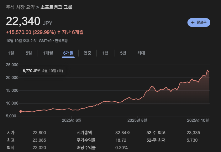 최근 일본 증시가 연일 사상 최고치를 경신하고 있습니다. 특히 소프트뱅크그룹(SoftBank Group)과 소니그룹(Sony Group)이 그 상승을 주도하고 있다는 점이 눈에 띄어요. 저는 오늘, 그중에서도 일본 증시의 AI 테마 중심에 서 있는 소프트뱅크그룹에 대해 이야기해보려 합니다.