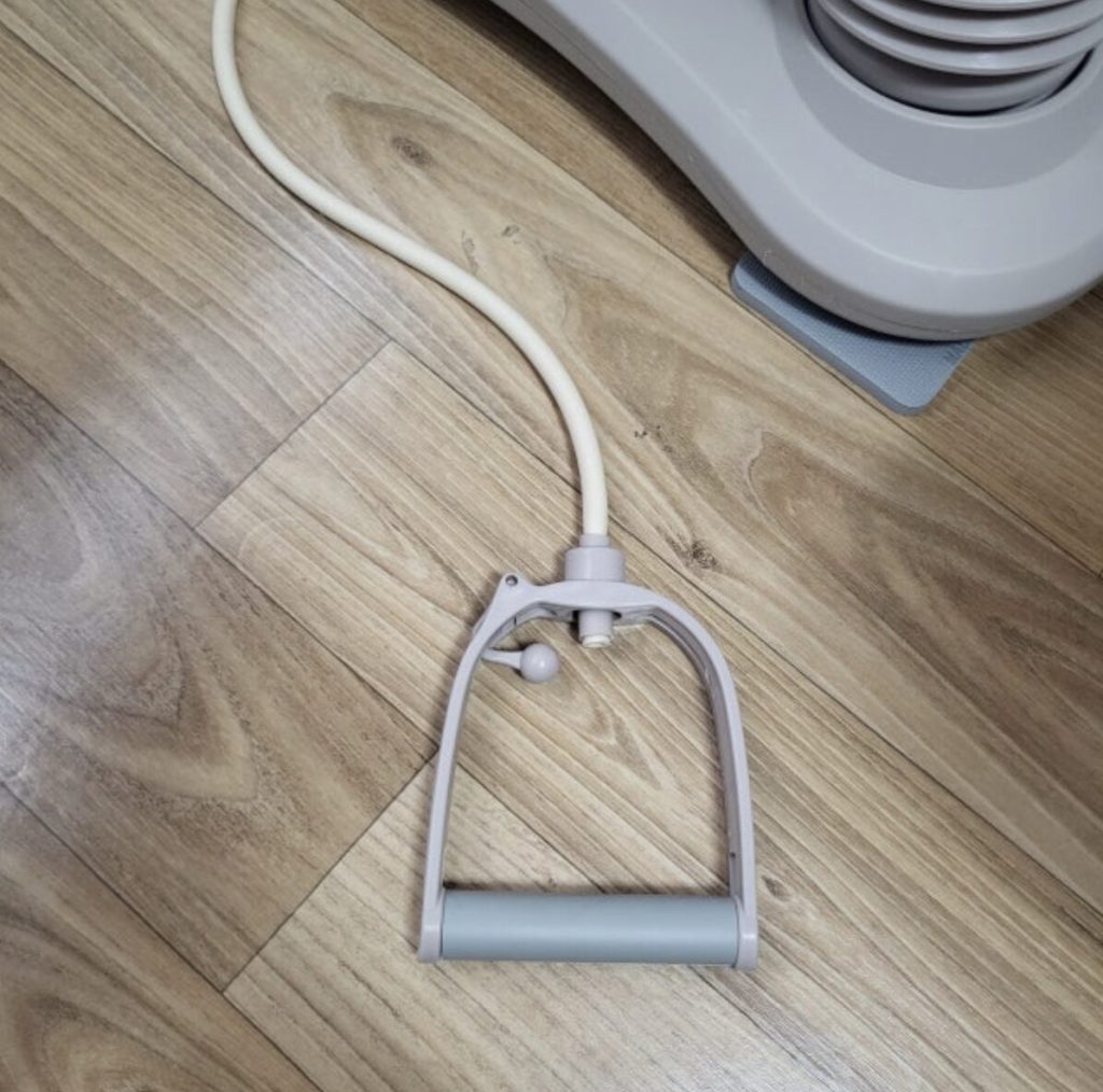하체 운동만 하면 자칫 지루할 수 있는데 함께 제공되는 튜빙밴드 덕분에 상체 운동까지 병행할 수 있었어요. 밴드를 장착하고 이두근 운동이나 등 운동을 하면서 스텝을 밟으면 전신을 모두 사용하는 느낌이 들어서 운동 효율이 훨씬 높았어요. 튜빙밴드는 바닥 면의 홈에 끼워 넣는 방식이라 장착이 매우 간편하고 잠금장치를 통해 길이를 내 신장에 맞춰 조절할 수 있는 점도 편리했어요. 손잡이 폼 소재 역시 유해 물질 검사를 통과한 안전한 소재라고 해서 맨손으로 잡아도 안심이 되었어요.